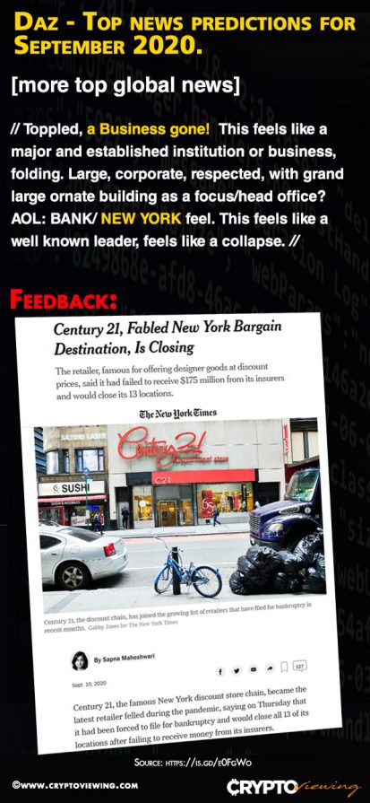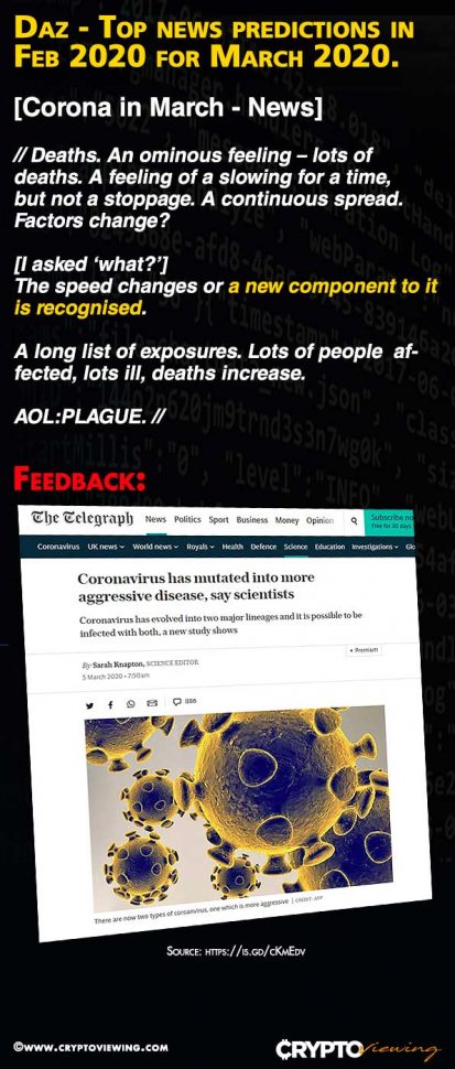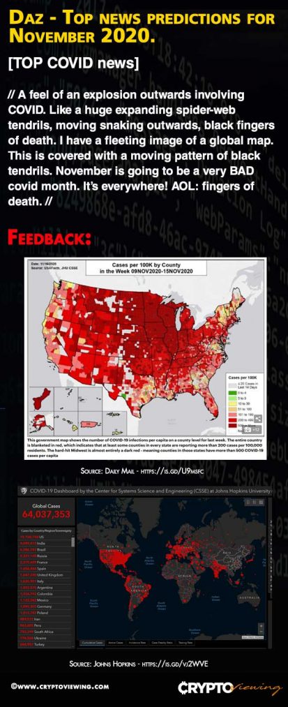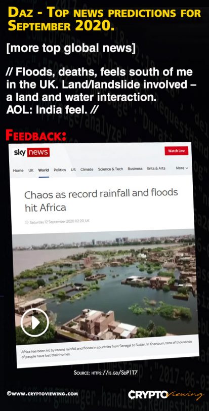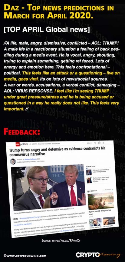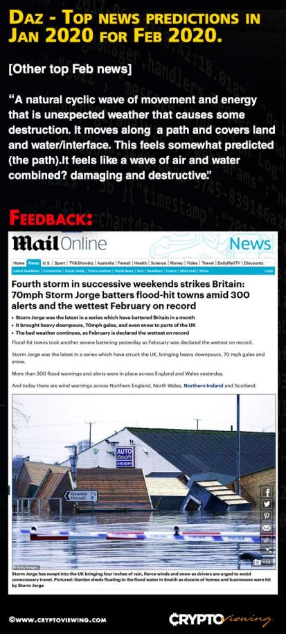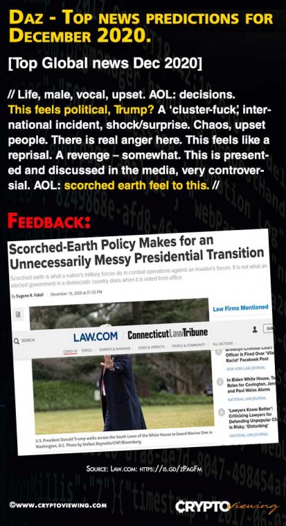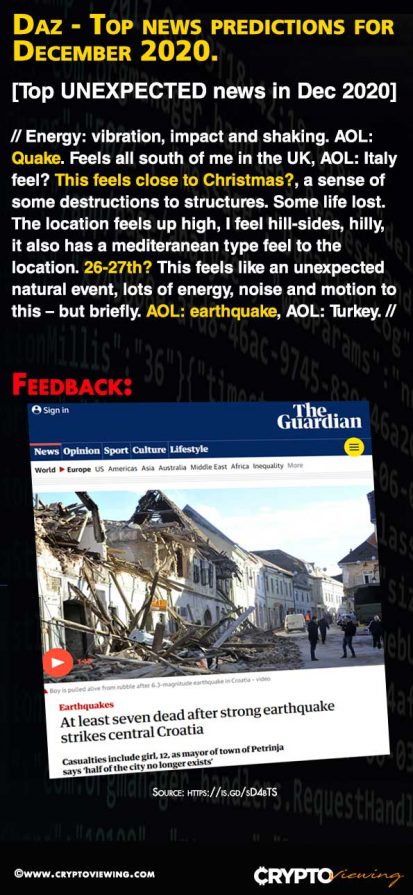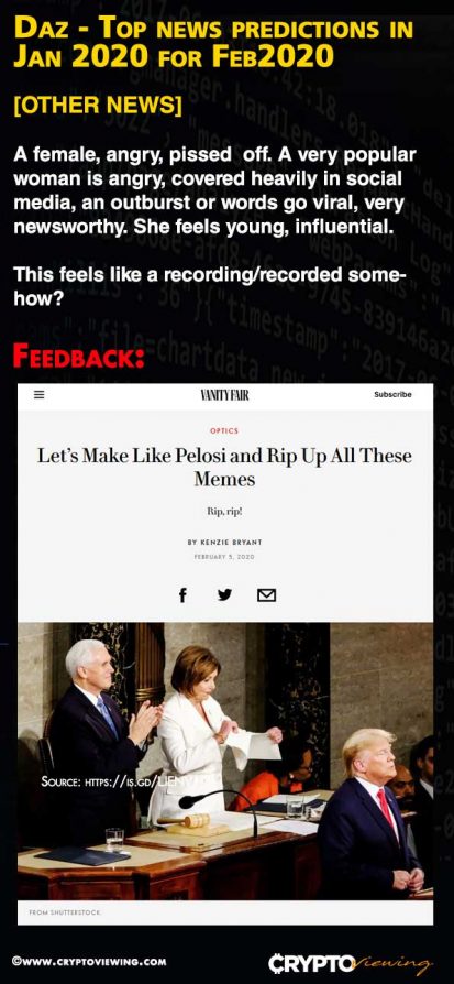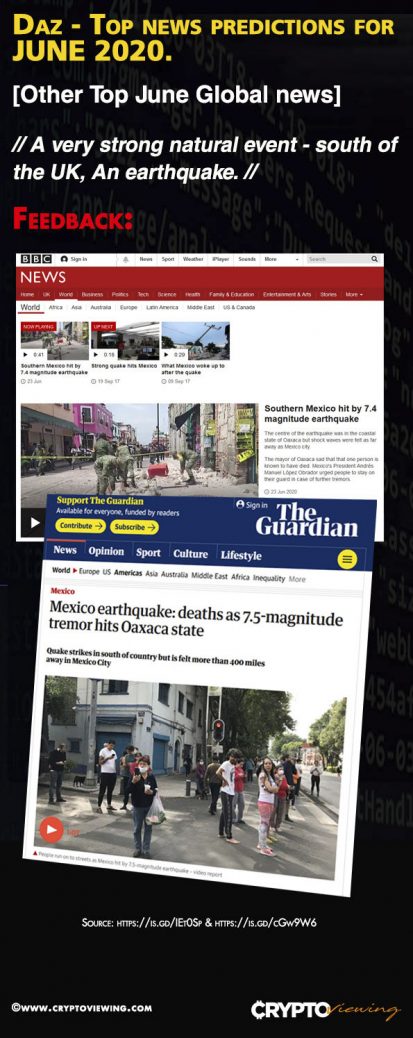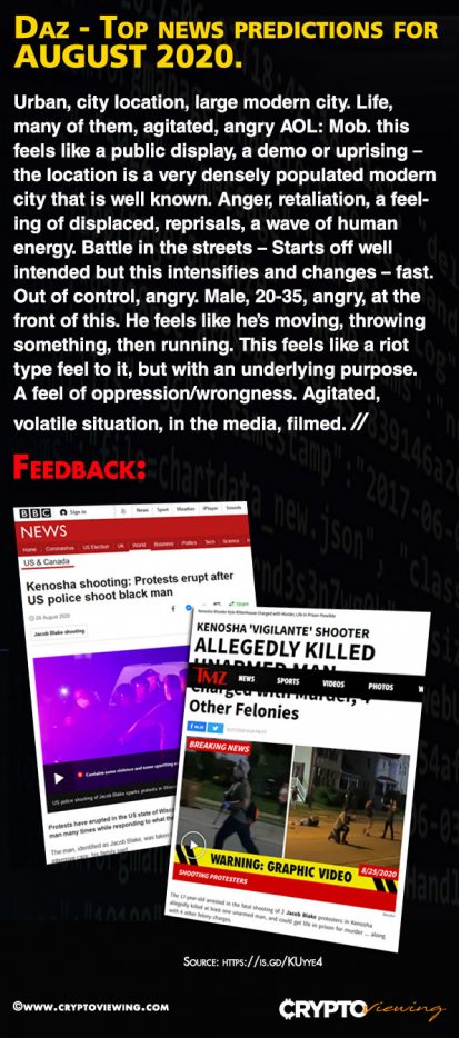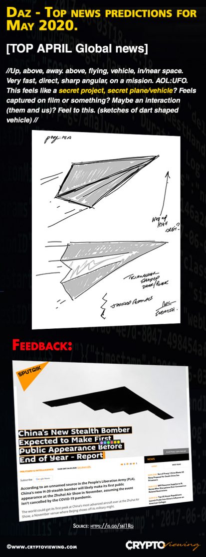Every month the remote viewing team looks 30 days ahead and we try to predict the top global news stories that will emerge the following month. Enclosed are most of my confirmed HITS for 2020.